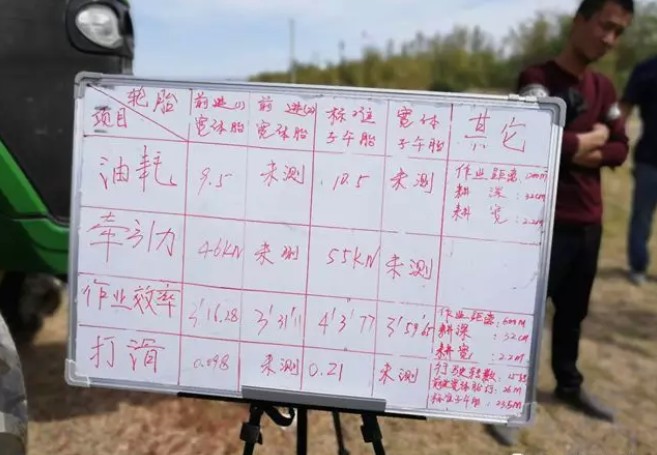1.奎屯演示會:從測試對比數據看,裝配前進農業子午線寬胎的耕作效率比標準子午線輪胎提高4.15%~8.68%。